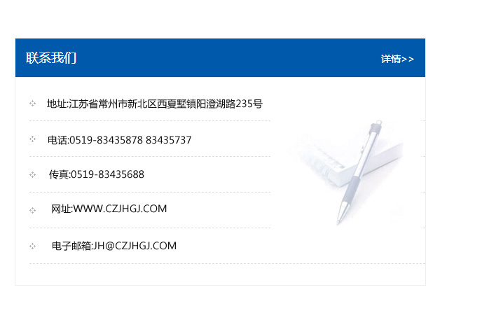 地址:常州市新北區友邦商務大廈1幢16、17層  電話:0519-85101652  傳真:0519-85112595  郵編:213022  網址:www_cz-jiayue_cn.sundial-sys.com  郵箱:xiajifengaa@163.com